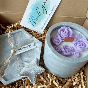 Choose one of our Handmade Gift sets . Scented Candles. Natural Soaps. Strong scent Wax melts.​ Wax burners. Home fragrance in gift box.