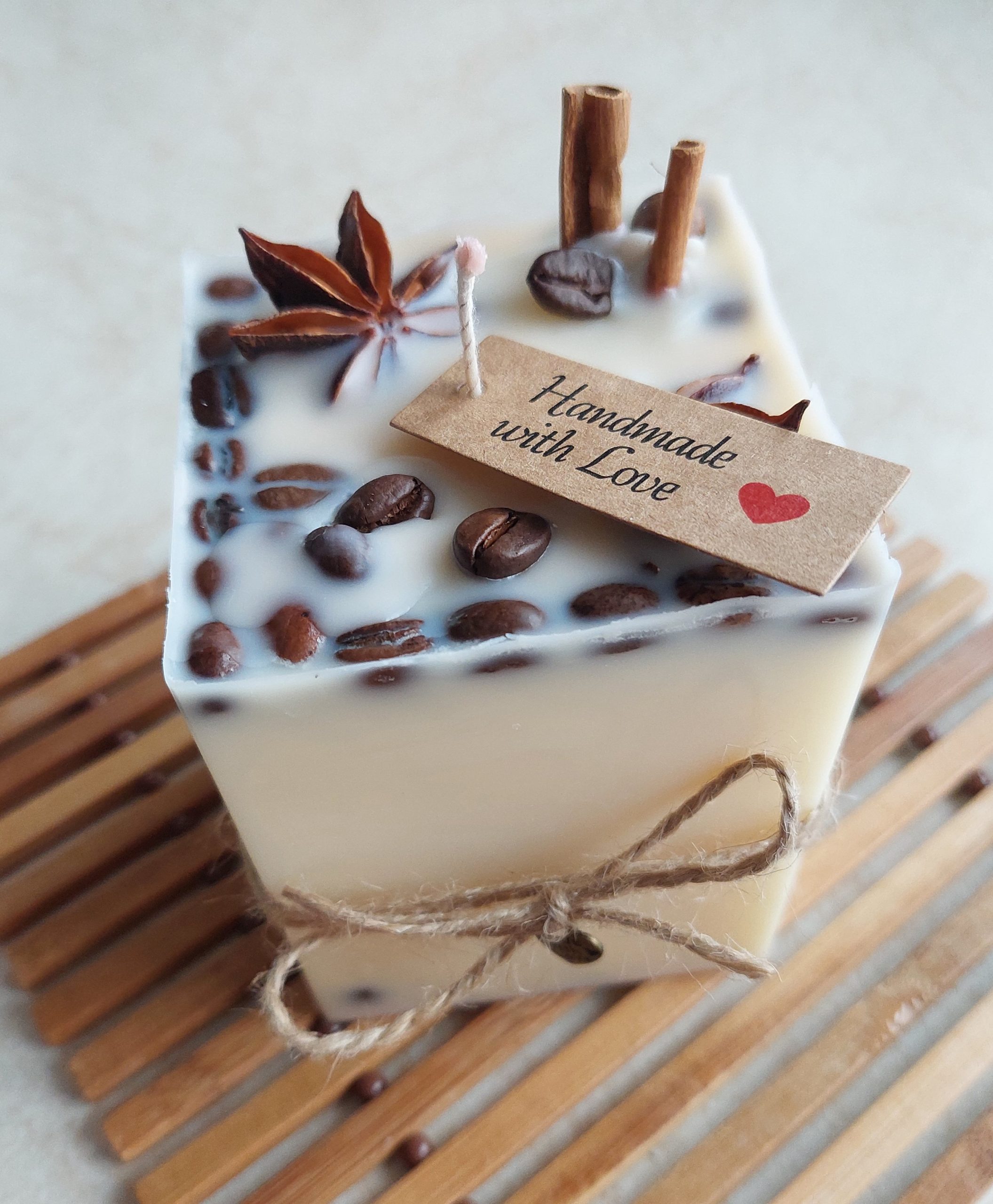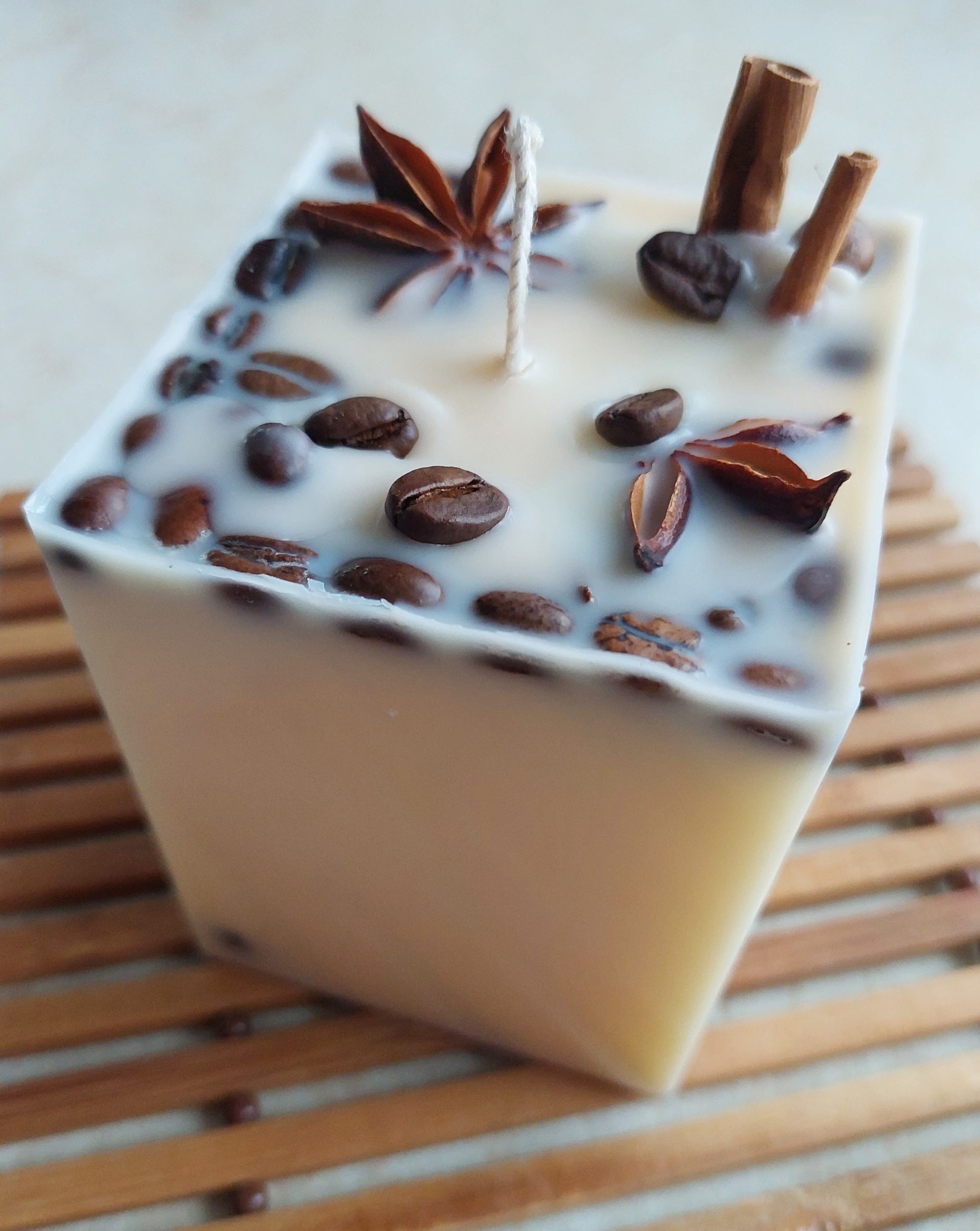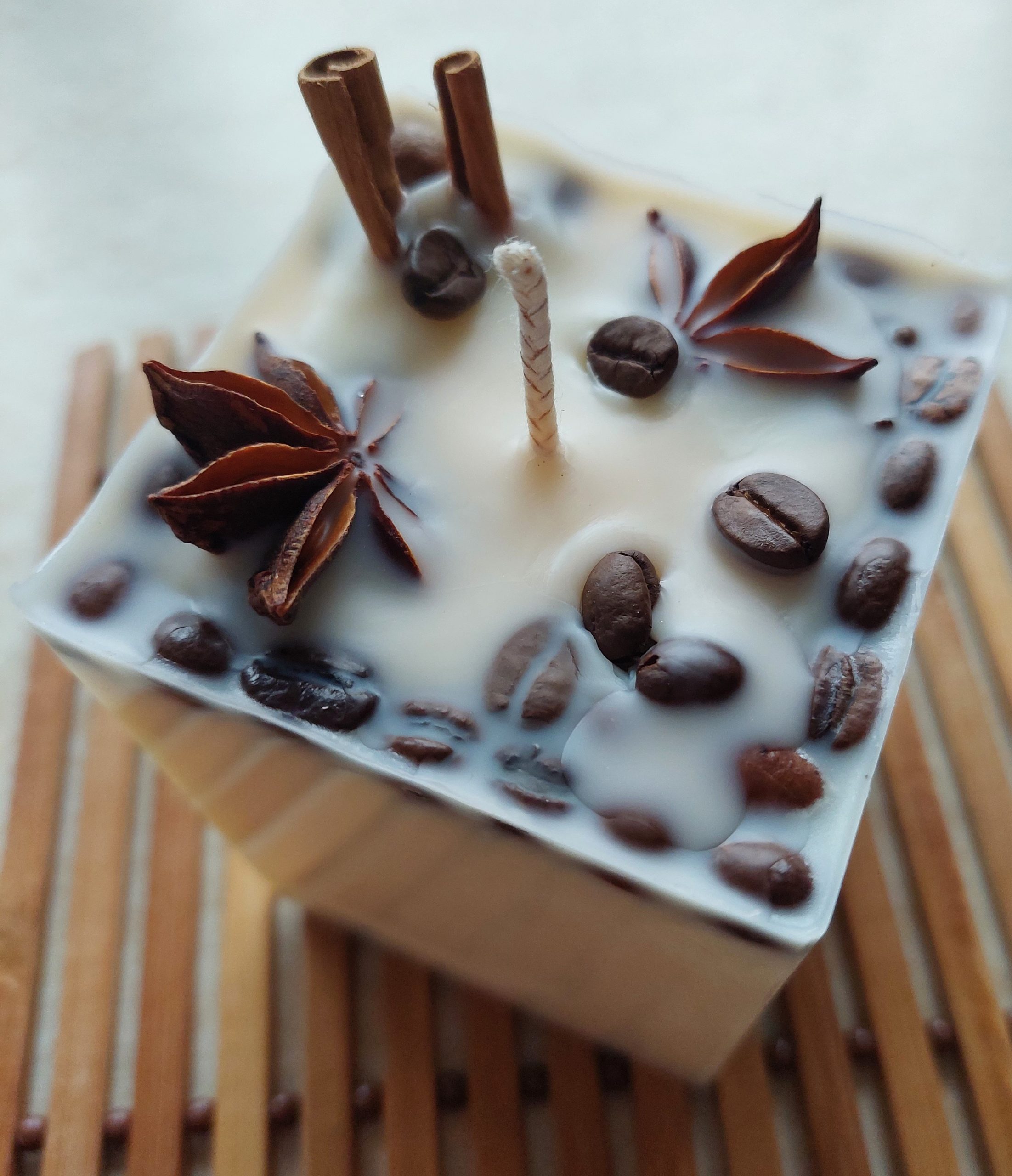 Coconut wax candle with coffee beans. Cube candle is a nice gift or Home decor.