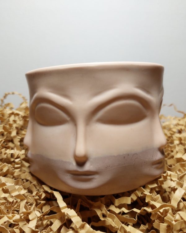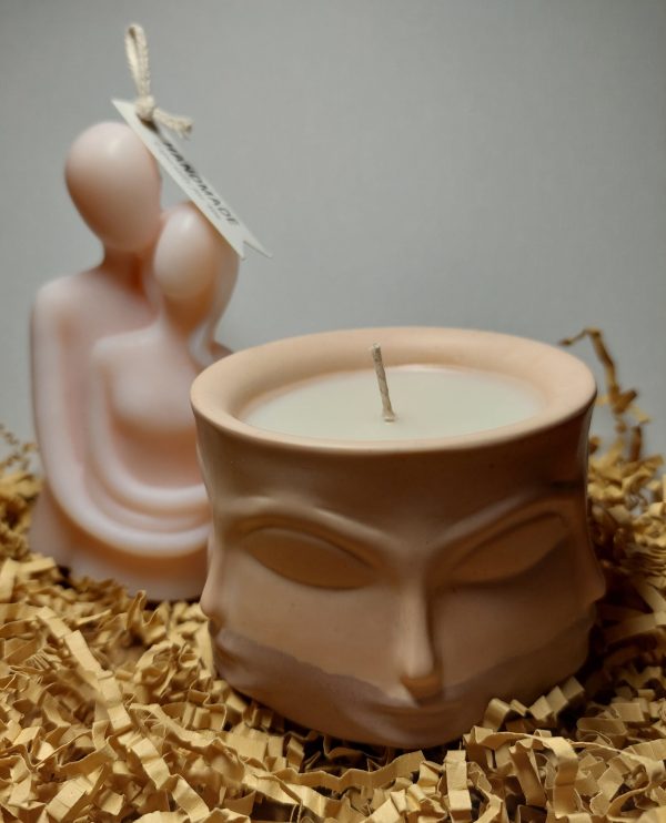 Woman & man candle and jesmonite container candle in the shape of a human face.