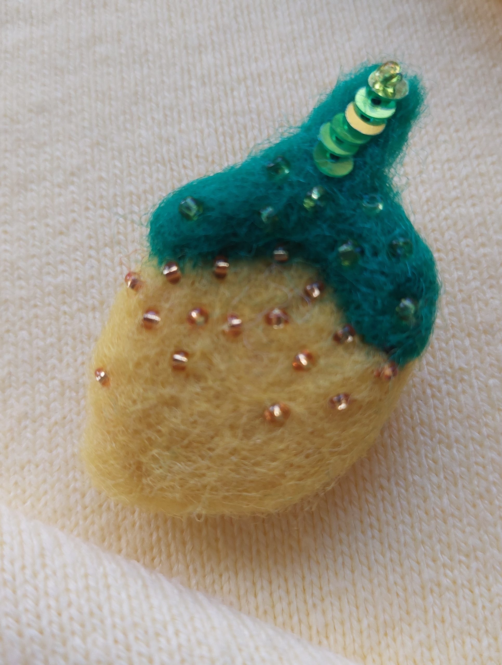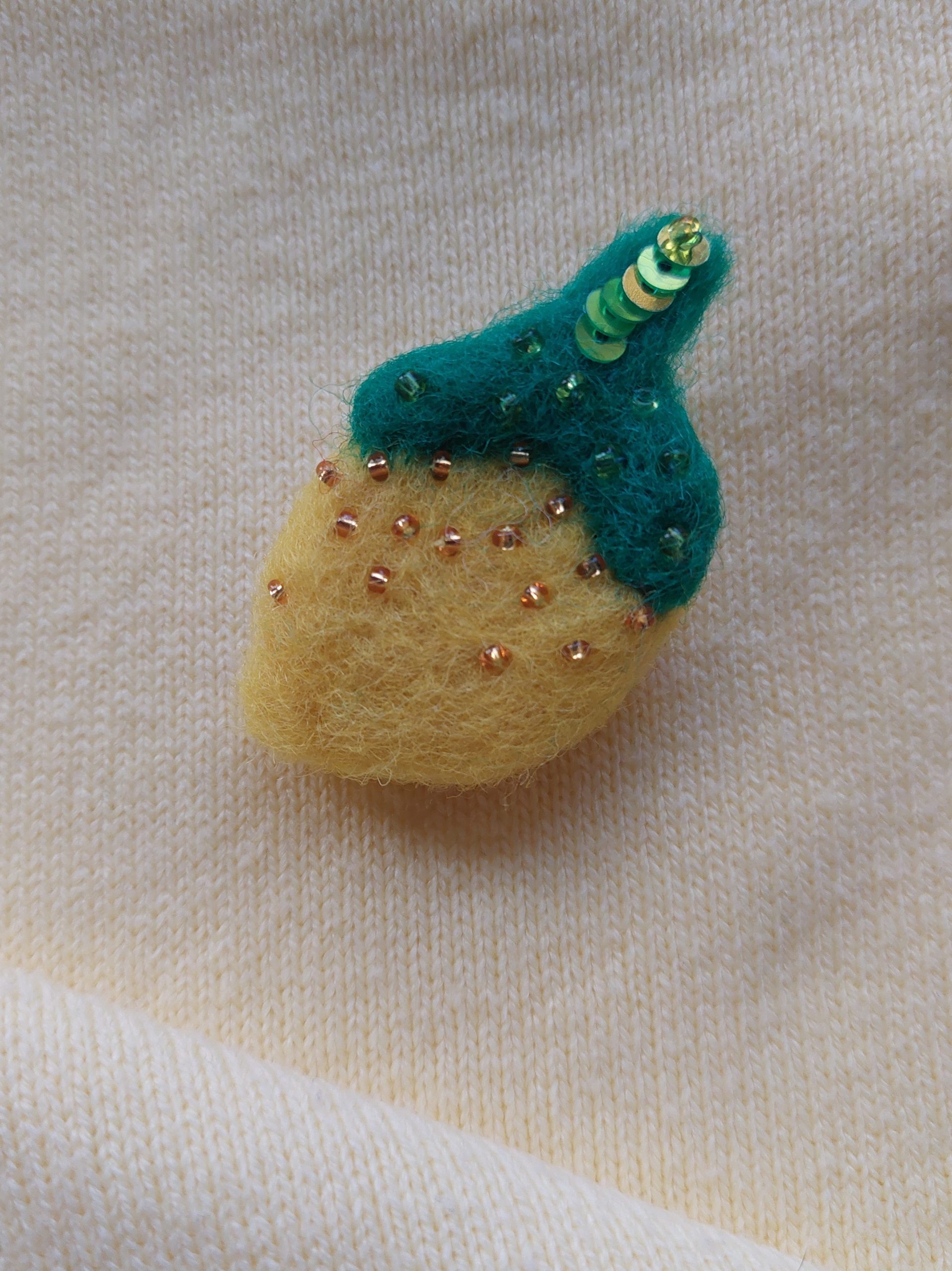 LEMON pin for your sweater or hat. Great present for everyone who admires handmade Eco-friendly creations.