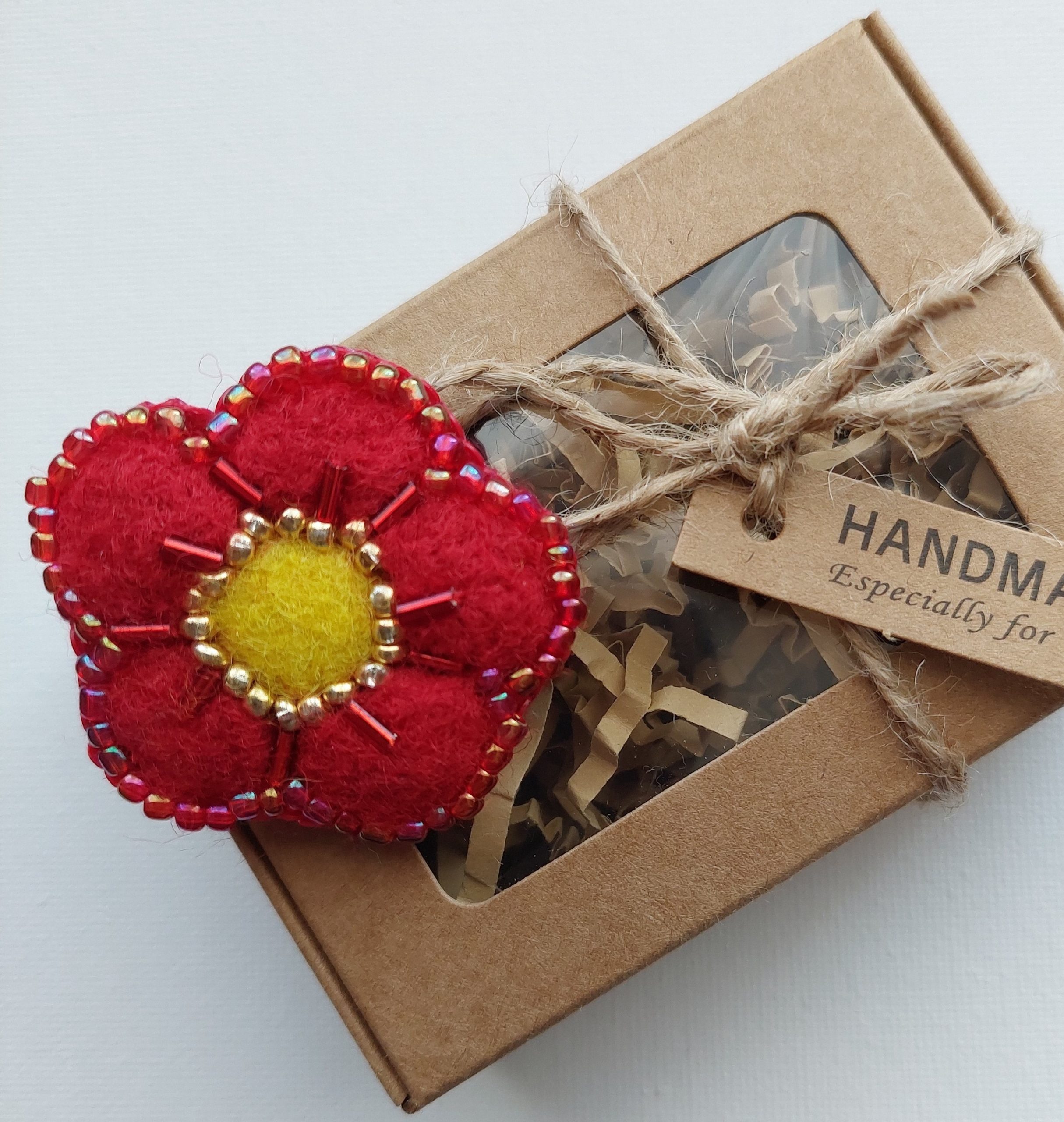 Red flower pin for your sweater or hat. Great present for everyone who admires handmade Eco-friendly creations.
